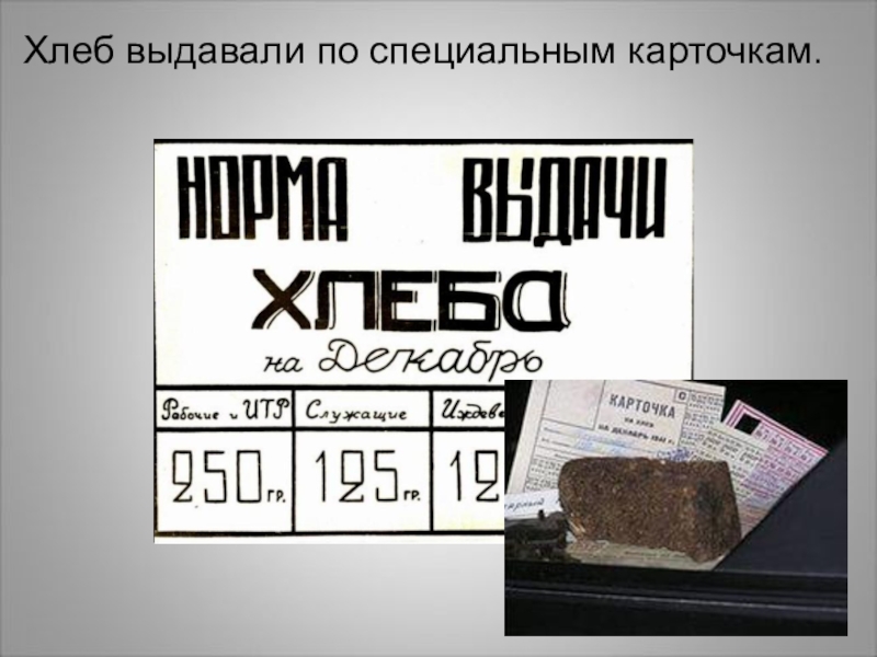 Слайд 17Хлеб выдавали по специальным карточкам.
