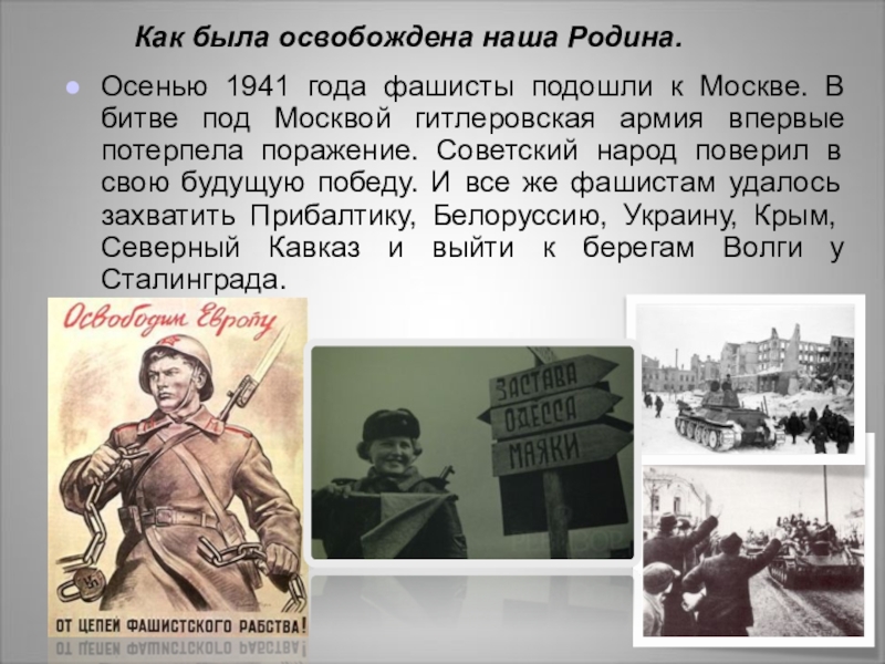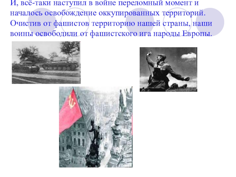 Слайд 40И, всё-таки наступил в войне переломный момент и началось освобождение оккупированных