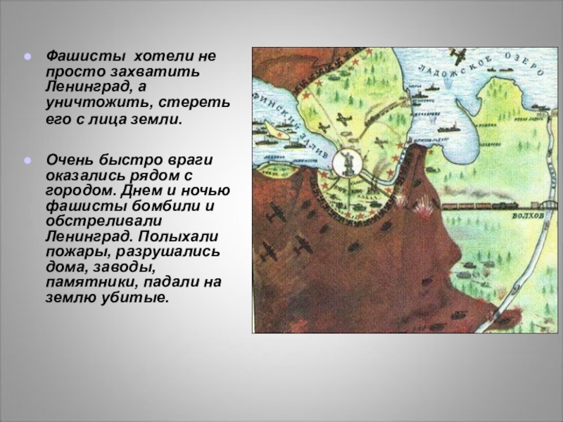 Слайд 11Фашисты хотели не просто захватить Ленинград, а уничтожить, стереть его с