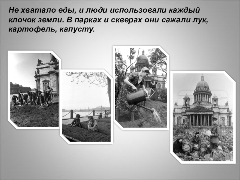 Слайд 15Не хватало еды, и люди использовали каждый клочок земли. В парках