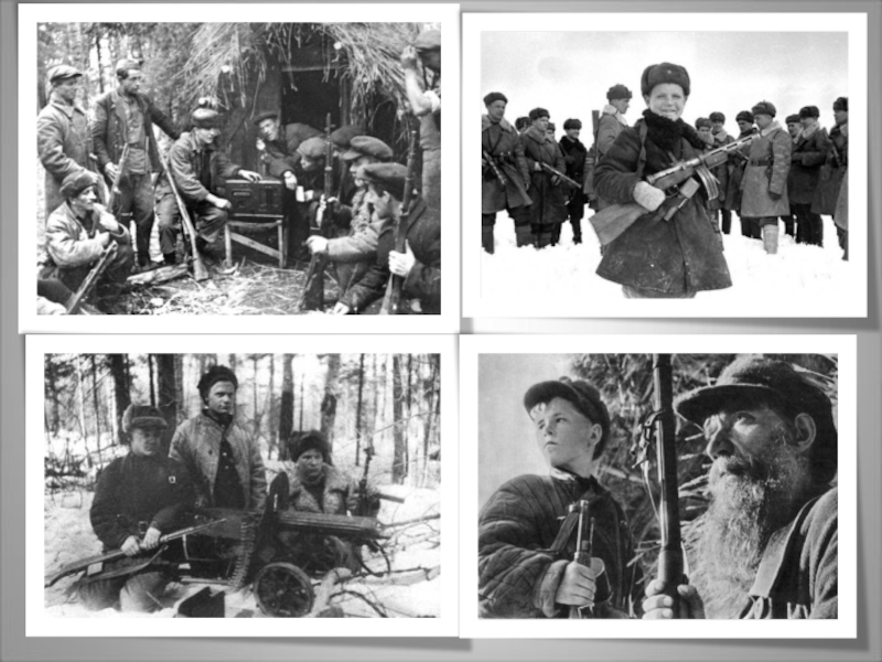 фашистами, действовали партизанские отряды. Партизаны убивали карателей и полицаев, разрушали мосты, пускали под откос поезда с вооружением и гитлеровскими солдатами. За помощь партизанам фашисты расстреливали женщин, стариков и детей, сжигали целые деревни.