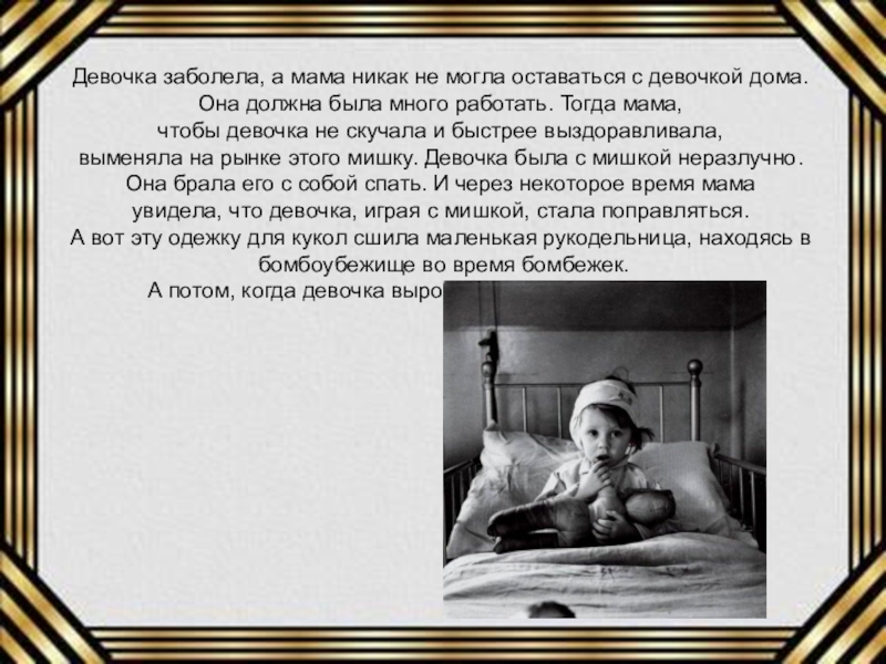 Слайд 36Девочка заболела, а мама никак не могла оставаться с девочкой дома.