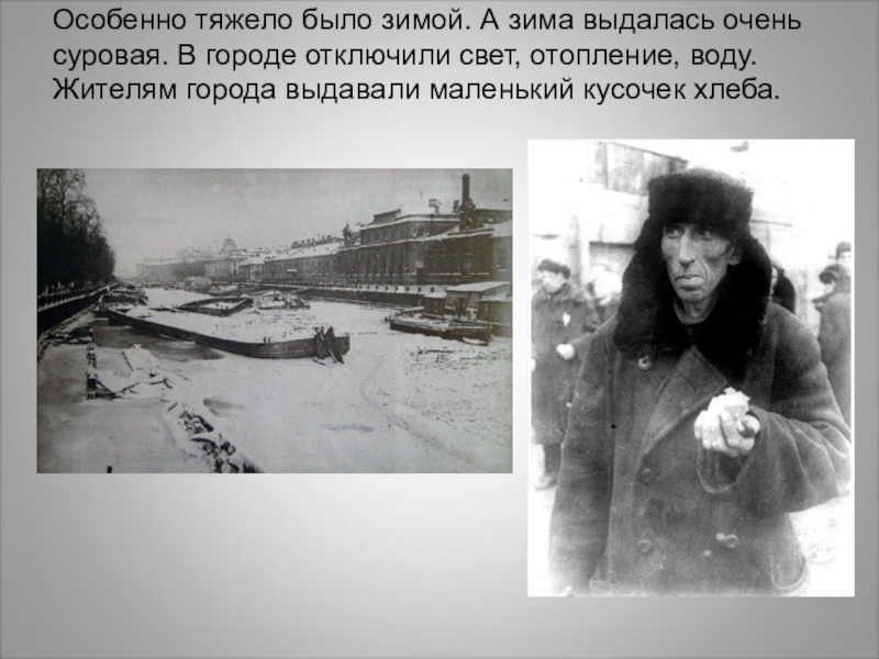 Слайд 16Особенно тяжело было зимой. А зима выдалась очень суровая. В городе