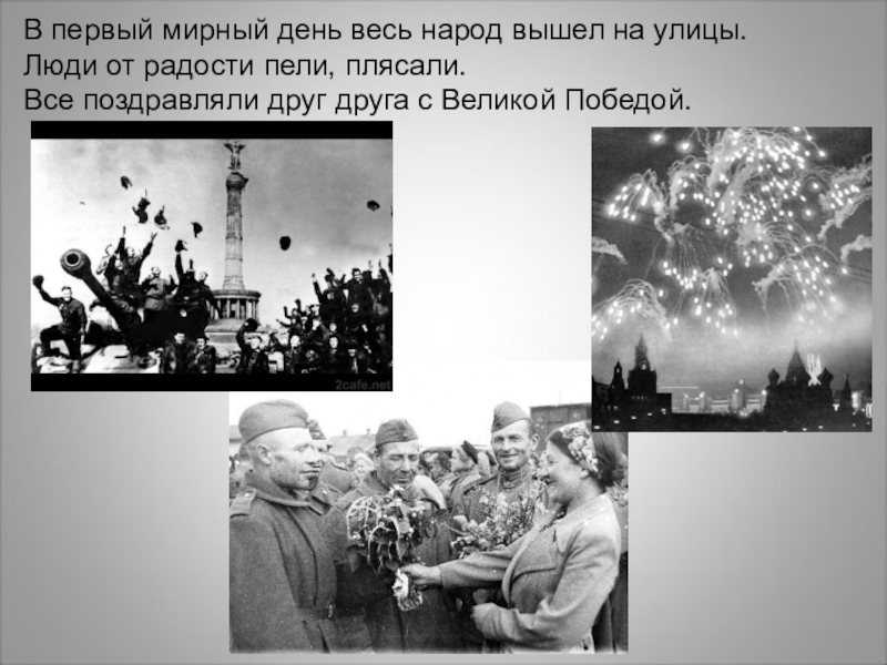 Слайд 24В первый мирный день весь народ вышел на улицы.