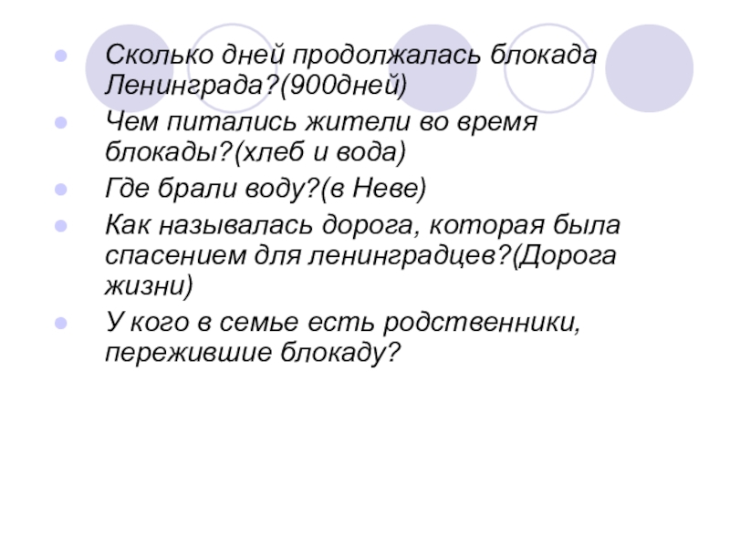 Слайд 42Сколько дней продолжалась блокада Ленинграда?(900дней)