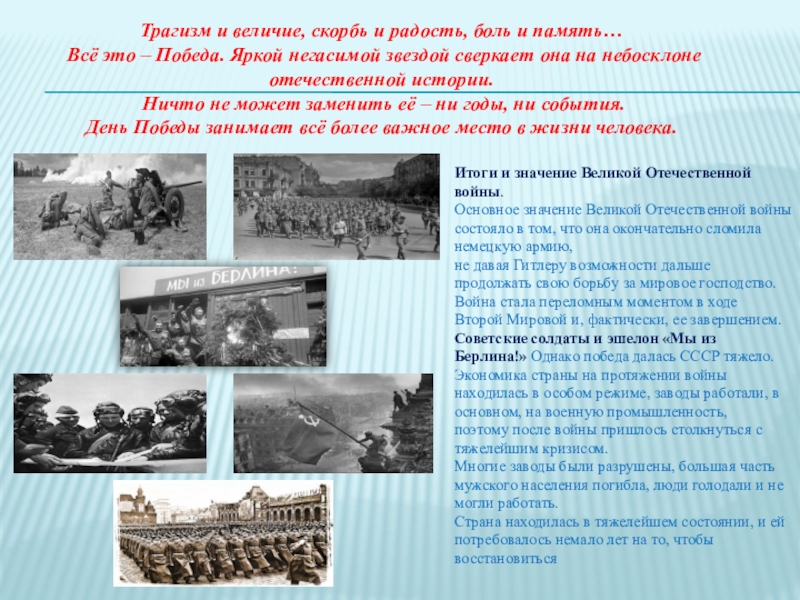 Основное значение Великой Отечественной войны состояло в том, что она окончательно сломила немецкую армию,