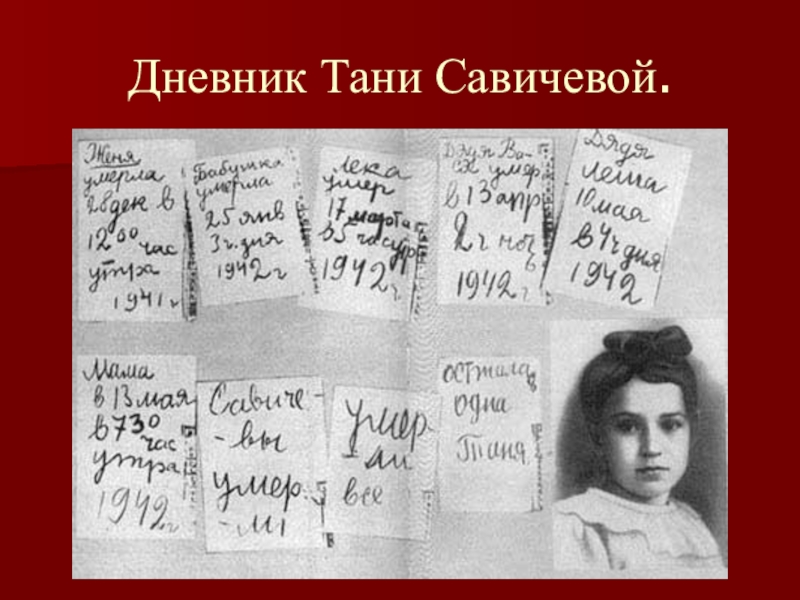 Слайд 14Из дневника Тани Савичевой мы узнали, что в осажденном Ленинграде жила