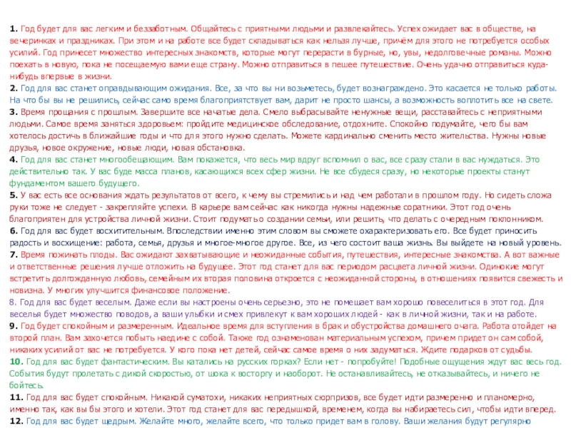 Слайд 41. Год будет для вас легким и беззаботным. Общайтесь с приятными