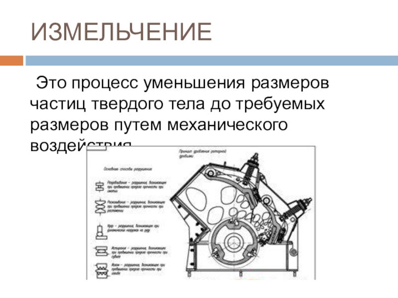 ИЗМЕЛЬЧЕНИЕ Это процесс уменьшения размеров частиц твердого тела до требуемых размеров путем механического воздействия.