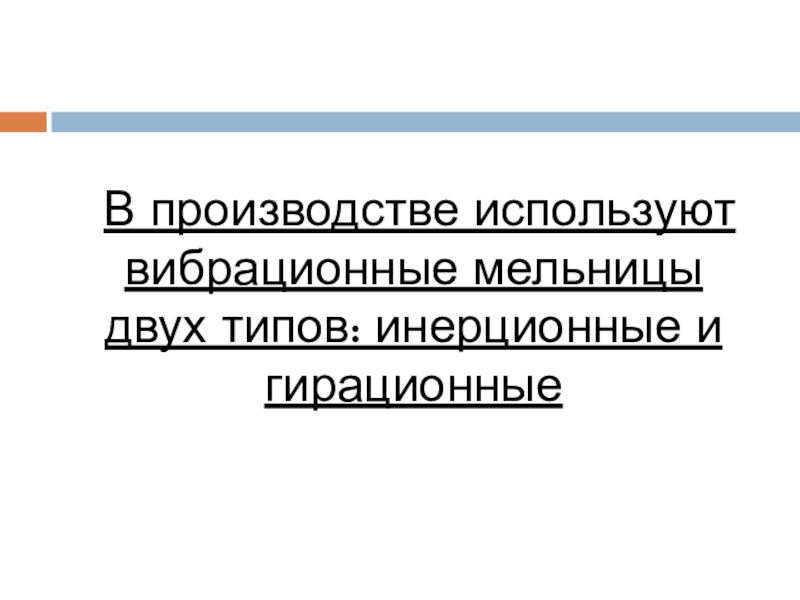 Слайд 6 В производстве используют вибрационные мельницы двух типов: инерционные и гирационные