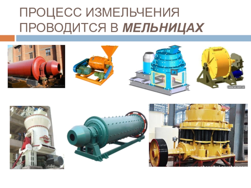 Слайд 3ПРОЦЕСС ИЗМЕЛЬЧЕНИЯ ПРОВОДИТСЯ В МЕЛЬНИЦАХ