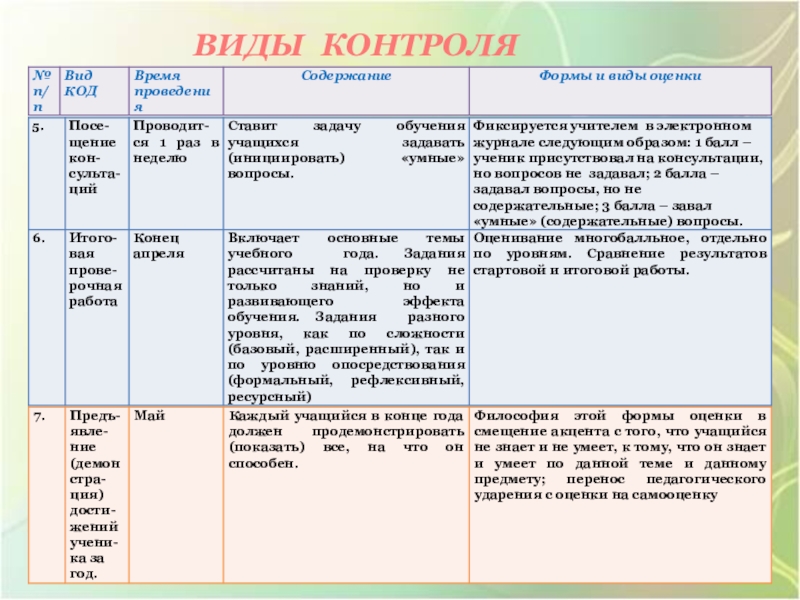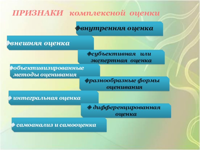 использование наряду со стандартизированными письменными или устными работами таких форм и методов оценки, как проекты, практические работы, творческие работы, самоанализ, самооценка, наблюдения и др.;
