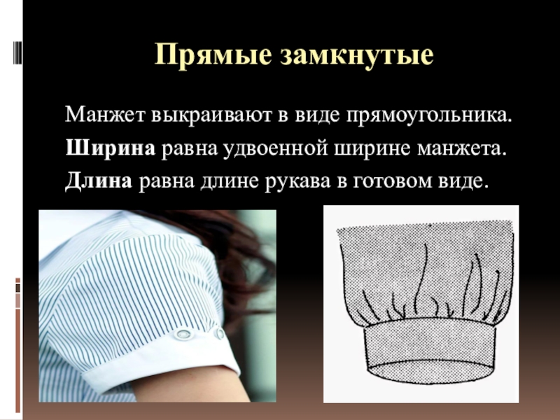 Слайд 5Манжеты с застежкой на петли и пуговицы могут быть с прямым