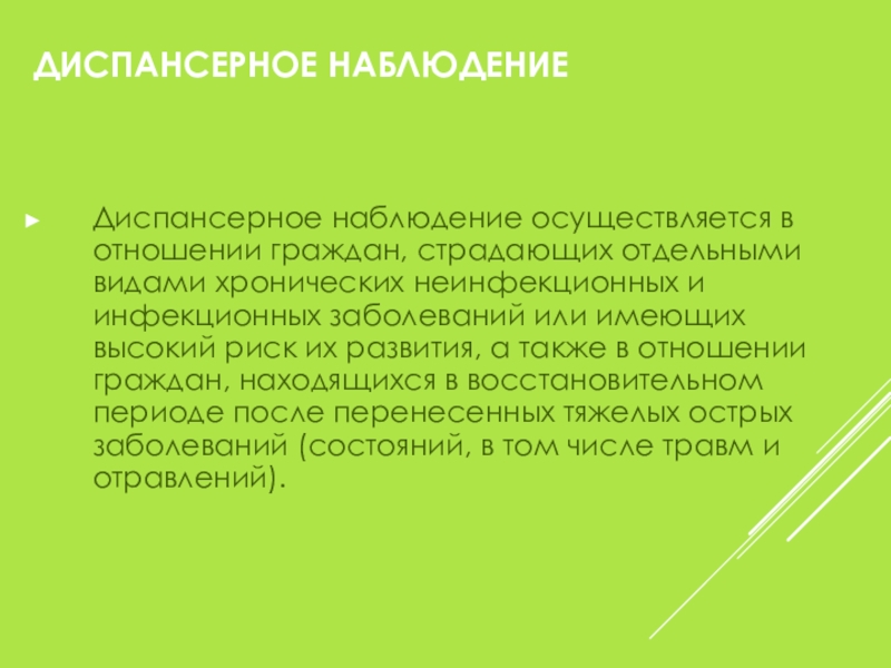 Слайд 13ДИСПАНСЕРНОЕ НАБЛЮДЕНИЕ
