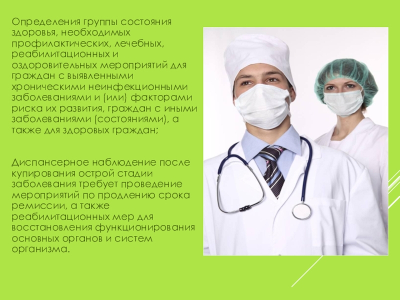 Слайд 12Определения группы состояния здоровья, необходимых профилактических, лечебных, реабилитационных и оздоровительных мероприятий