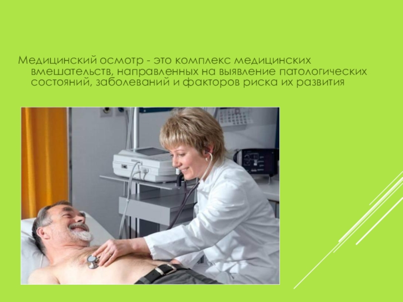 Слайд 2Медицинский осмотр - это комплекс медицинских вмешательств, направленных на выявление патологических
