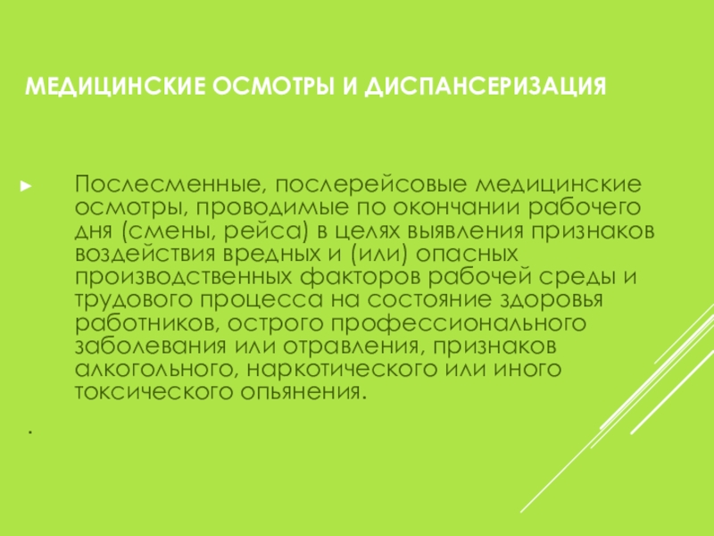 Слайд 4Периодический медицинский осмотр проводится с установленной периодичностью в целях динамического наблюдения