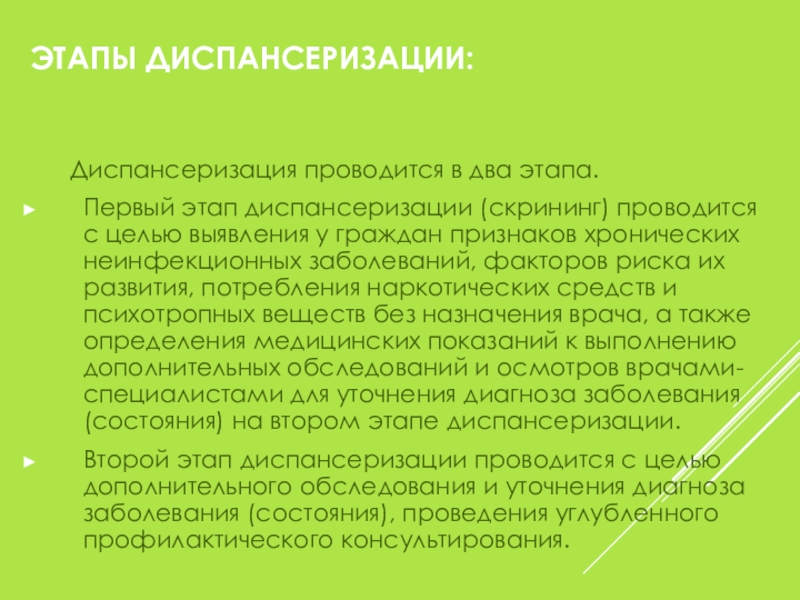 Слайд 10ЭТАПЫ ДИСПАНСЕРИЗАЦИИ: