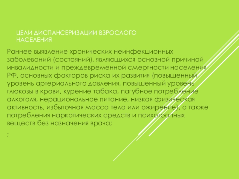 Слайд 11ЦЕЛИ ДИСПАНСЕРИЗАЦИИ ВЗРОСЛОГО НАСЕЛЕНИЯ