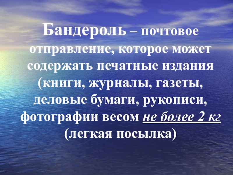 Презентация, доклад на тему Виды почтовых отправлений. Бандероль
