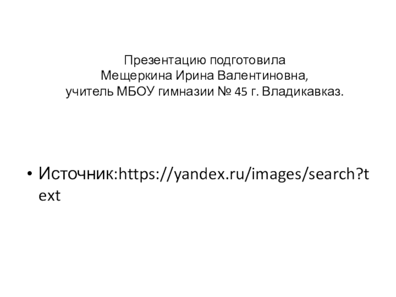 Презентацию подготовила Мещеркина Ирина Валентиновна, учитель МБОУ гимназии № 45 г. Владикавказ. Источник:https://yandex.ru/images/search?text