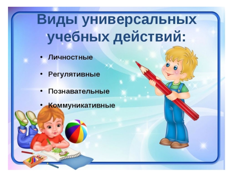 Слайд 1Виды универсальных учебных действий, формируемых у учащихся начальной школы.