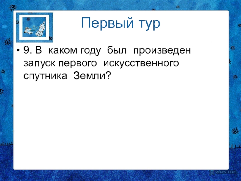 Первый тур9. В каком году был произведен запуск первого искусственного спутника Земли?