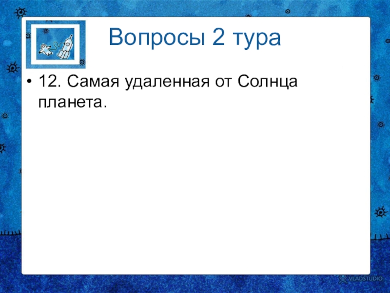Вопросы 2 тура12. Самая удаленная от Солнца планета.