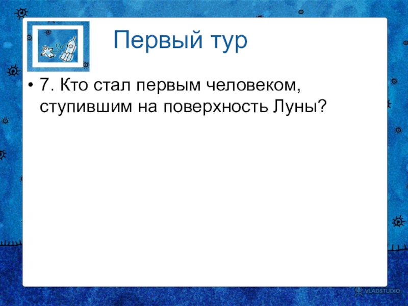 7. Кто стал первым человеком, ступившим на поверхность Луны? Первый тур