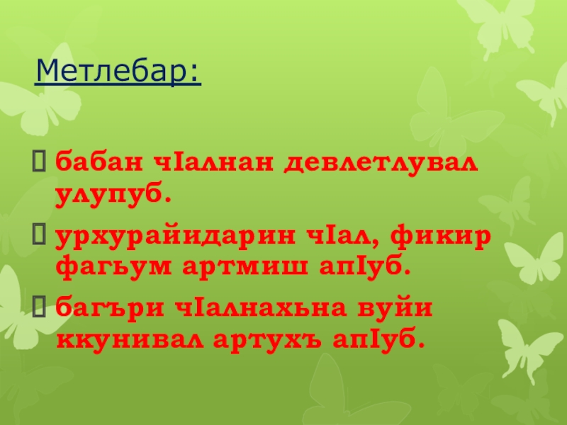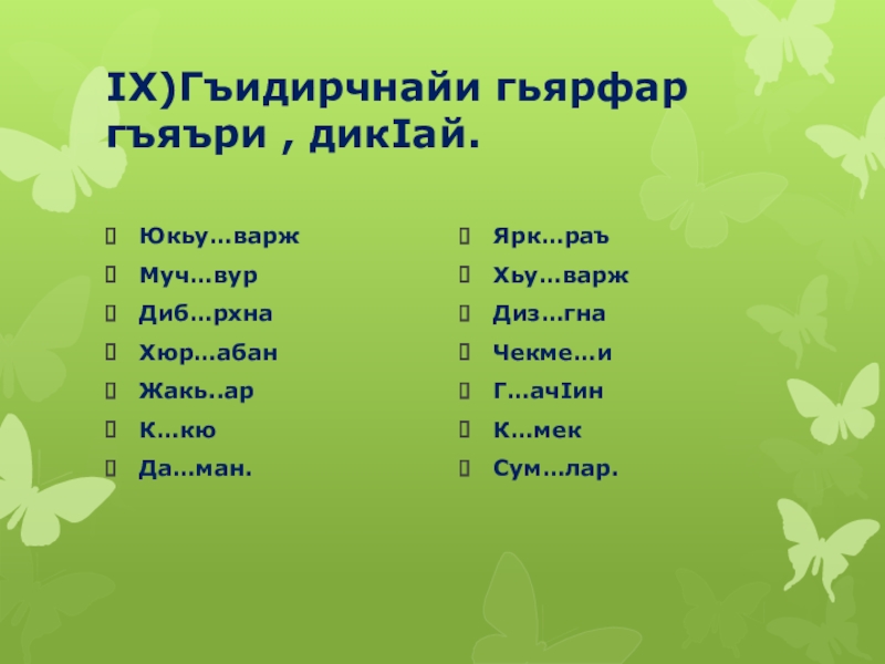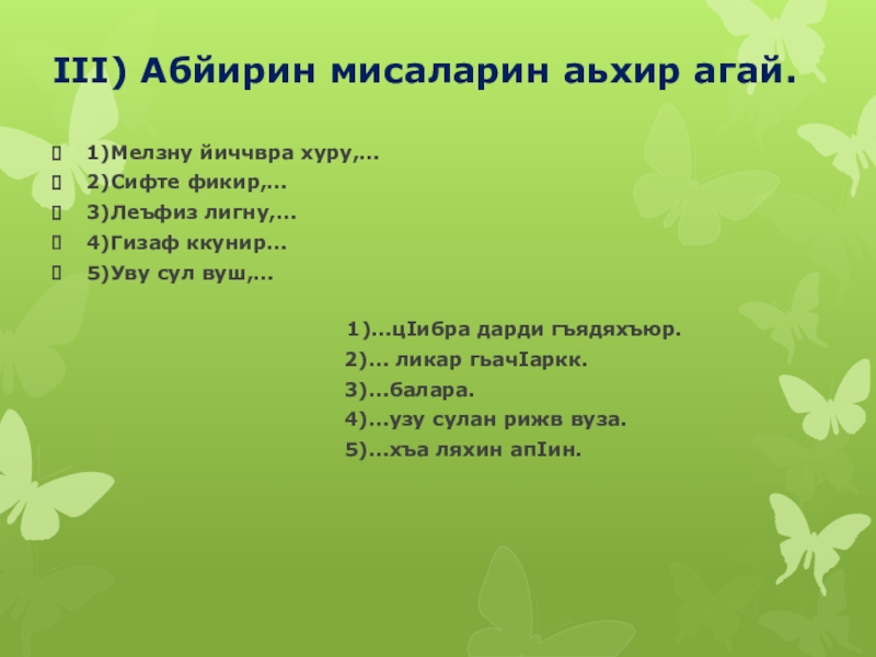 Viii)Грамматикайин суалариз жавабар: