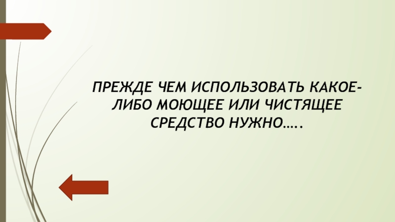 Слайд 28ПРЕЖДЕ ЧЕМ ИСПОЛЬЗОВАТЬ КАКОЕ-ЛИБО МОЮЩЕЕ ИЛИ ЧИСТЯЩЕЕ СРЕДСТВО НУЖНО…..