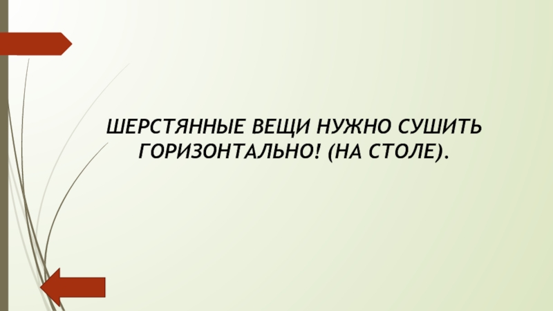 Слайд 3ШЕРСТЯННЫЕ ВЕЩИ НУЖНО СУШИТЬ ГОРИЗОНТАЛЬНО! (НА СТОЛЕ).