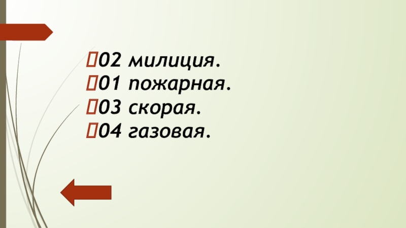02 милиция.01 пожарная.03 скорая.04 газовая.