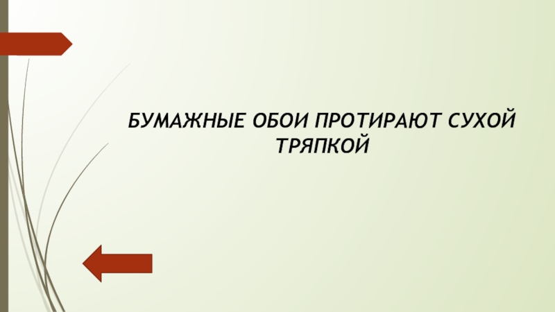 Слайд 31БУМАЖНЫЕ ОБОИ ПРОТИРАЮТ СУХОЙ ТРЯПКОЙ