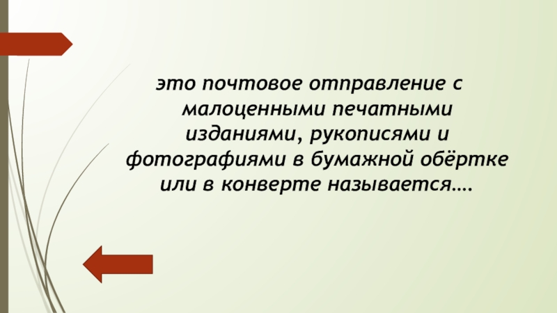 Слайд 50это почтовое отправление с малоценными печатными изданиями, рукописями и фотографиями в бумажной