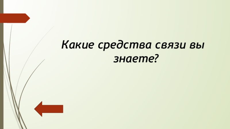- Почта: письмо, посылка, бандероль, электронный перевод.- Интернет- Телефонная связь- Факс.