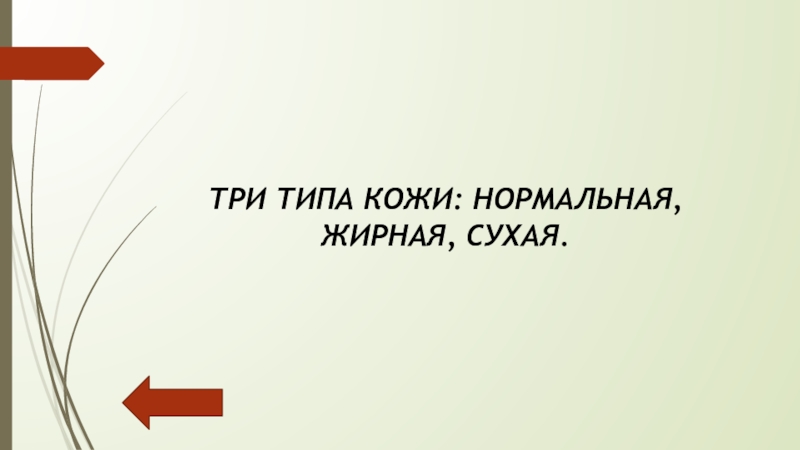 ТРИ ТИПА КОЖИ: НОРМАЛЬНАЯ, ЖИРНАЯ, СУХАЯ.