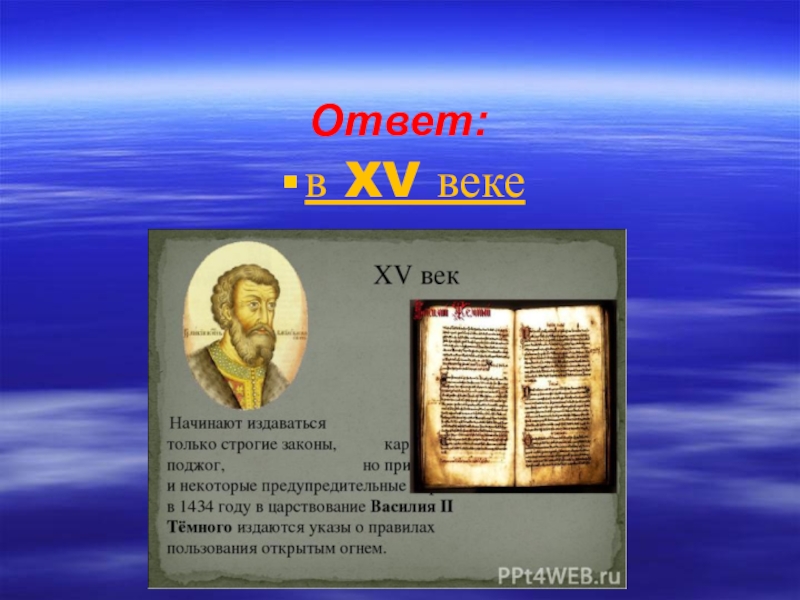 Презентация, доклад на тему Викторина-тест История пожарной охраны