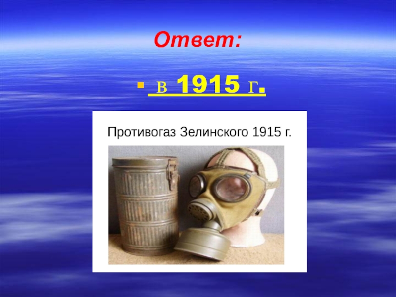 противогаз? а) В 1940 г.; б) в 1950 г.; в) в 1955 г.; г) в 1915 г.