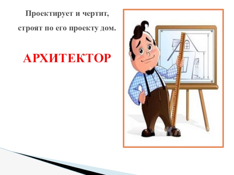 Слайд 84Проектирует и чертит, строят по его проекту дом.