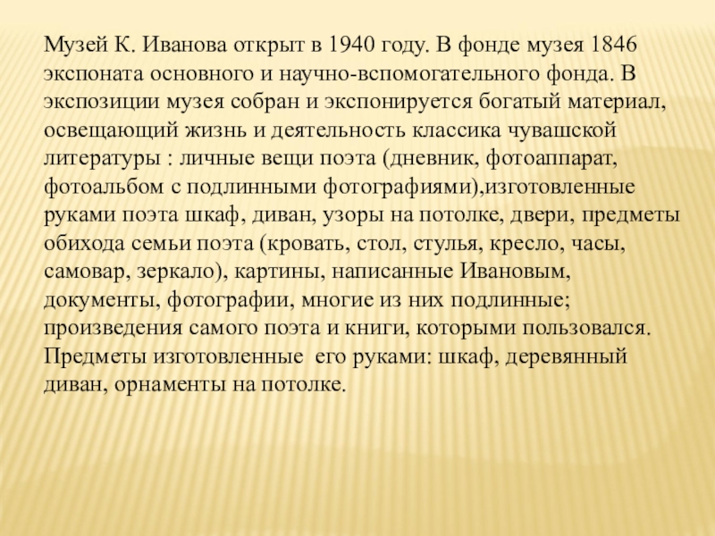 Слайд 33Музей К. Иванова открыт в 1940 году. В фонде музея 1846