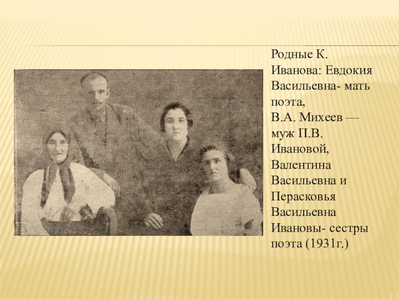 Слайд 10Родные К. Иванова: Евдокия Васильевна- мать поэта,