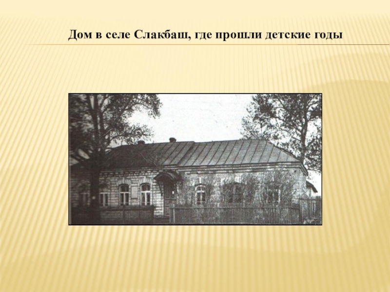 Слайд 9Дом в селе Слакбаш, где прошли детские годы