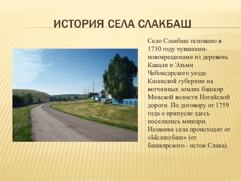Слайд 6Село Слакбаш основано в 1730 году чувашами-новокрещенами из деревень Кавали и