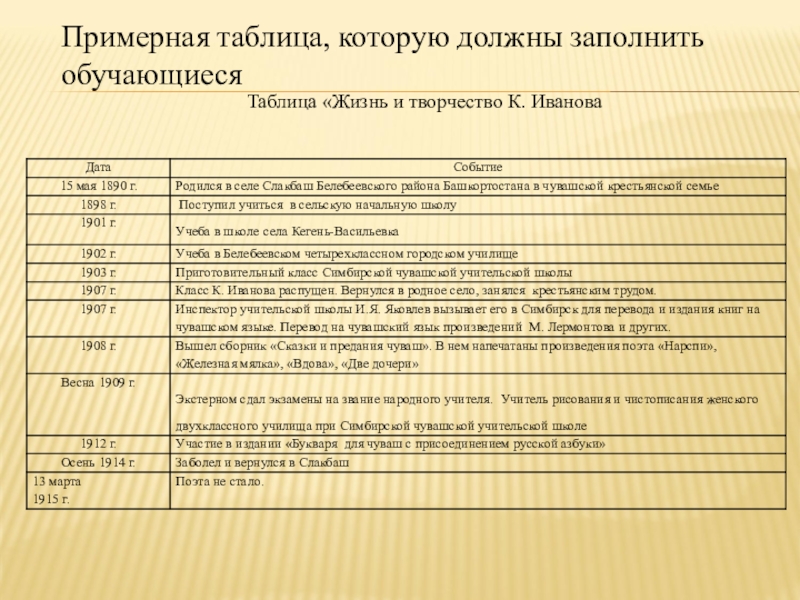 Слайд 41Примерная таблица, которую должны заполнить обучающиеся