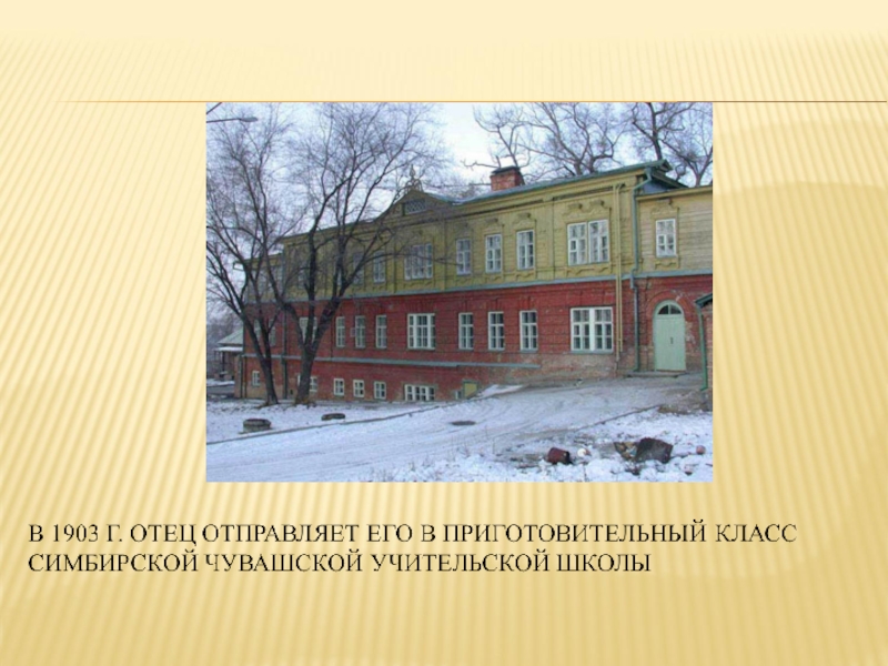 Слайд 22Закончить Симбирскую чувашскую учительскую школу не удалось: за коллективный протест