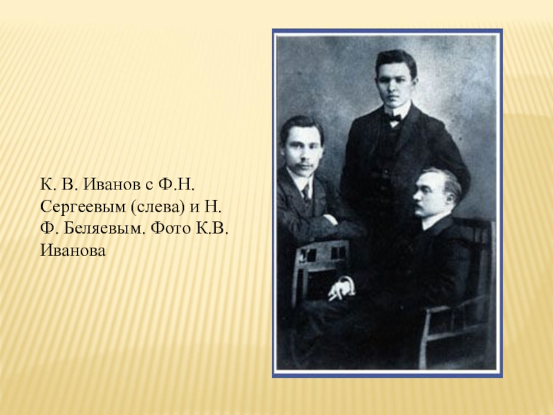 Слайд 17К. В. Иванов с Ф.Н. Сергеевым (слева) и Н.Ф. Беляевым. Фото