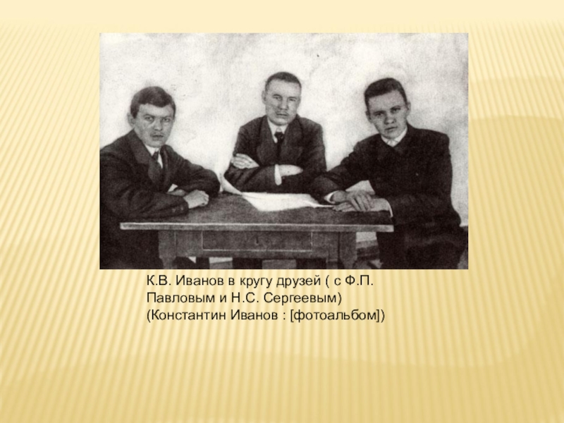 Слайд 20К.В. Иванов в кругу друзей ( с Ф.П. Павловым и Н.С.