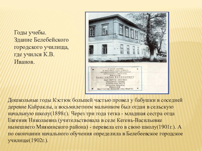 Здание Белебейского городского училища, где учился К.В. Иванов.