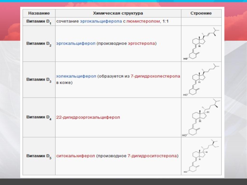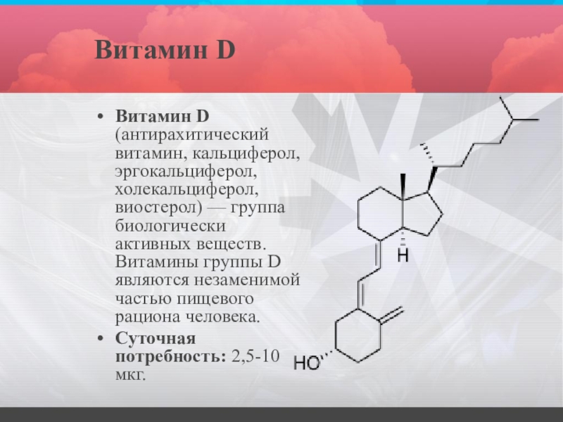 Витамин D (антирахитический витамин, кальциферол, эргокальциферол, холекальциферол, виостерол) — группа